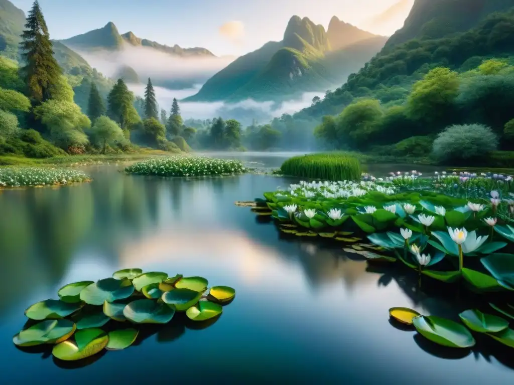 Escena exuberante de flora y fauna en ríos emblemáticos